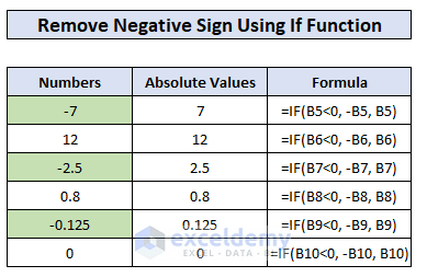 Abs(10%) = 0.1 · the absolute formula will remove negative sing from a number and keep . The first way to remove a negative sign is by using the abs function. In excel, find and replace command also can help you to find the negative sign in a range and replace it with nothing and thus the number will become positive. Under the category list, select the 'currency' option. If function is a conditional formula.